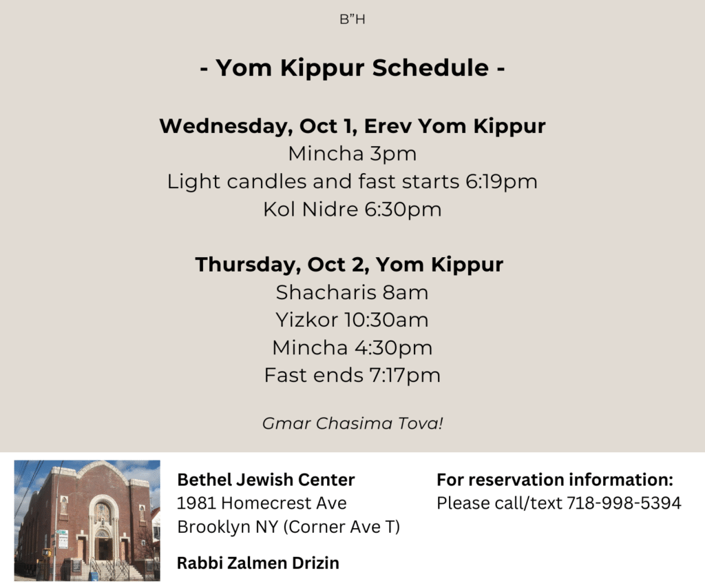 At the Bethel Nusach Ashkenaz Shul! 1981 Homecrest Ave – Corner Ave T.